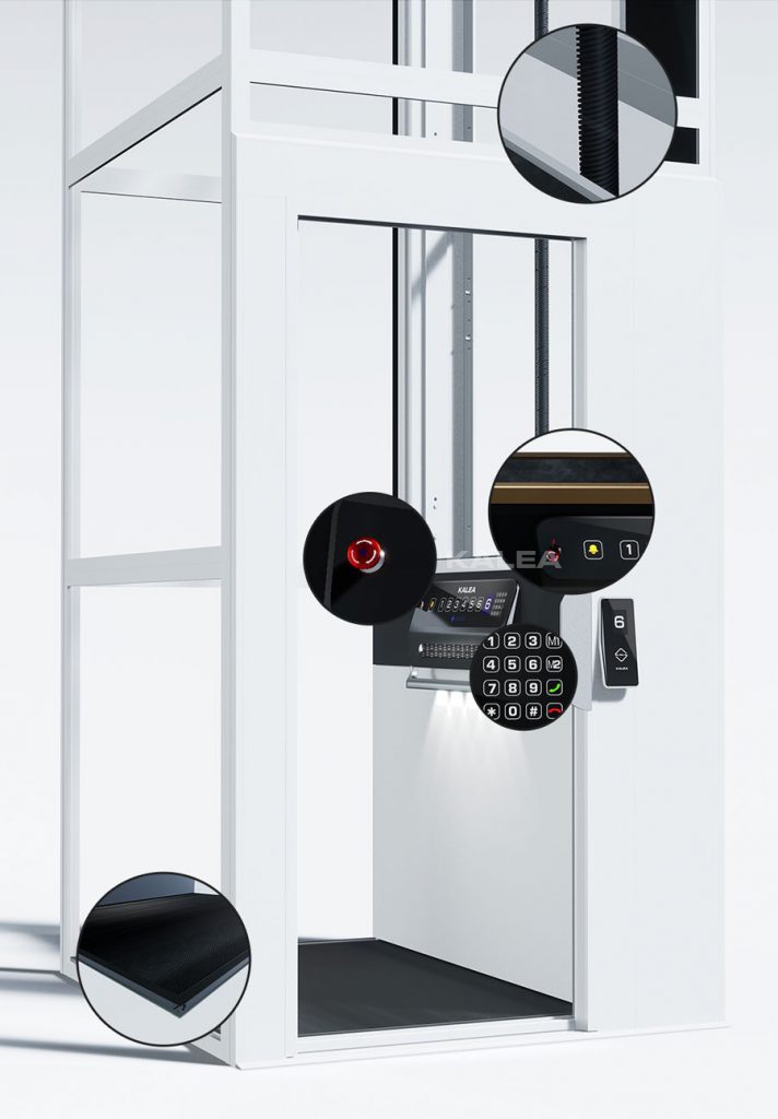 KALEA卡尼亚家用电梯采用螺杆驱动,确保电梯运行平稳,同时每台电梯都配备安全装置,如:紧急电话、紧急备用电池、停电紧急自动平层装置、超载报警装置、紧急通讯装置、电子和机械安全层门保护系统、平台内安全触边保护装置、可连接火警装置、防水淹装置等,有效避免出现因断电被困的情况。