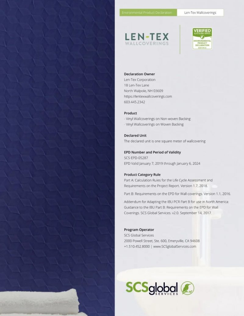 Len-Tex Wallcovering是一家全球领先的墙面材料制造商,自1983年成立于美国,企业一直致力于生产美观、耐用、环保的墙面材料,以促进更健康的室内空气质量 (IAQ)。