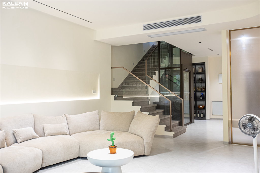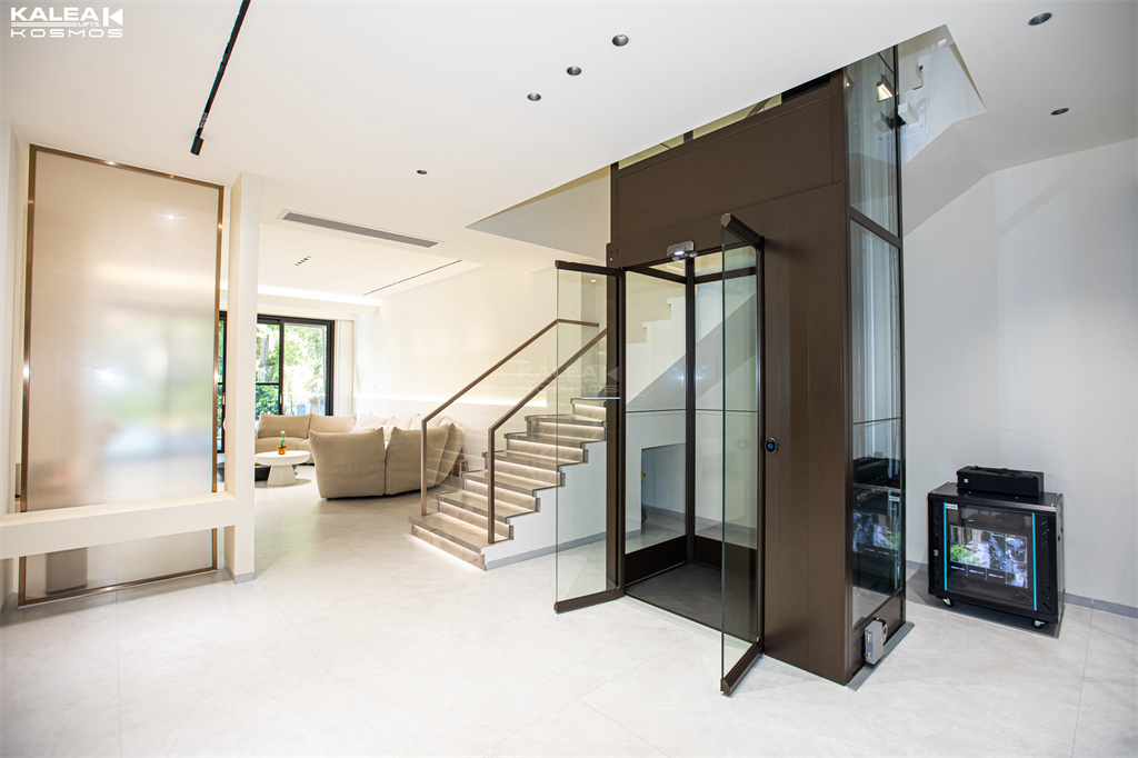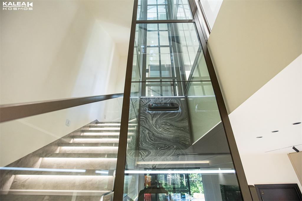将KOSMOS X50设在楼梯中间,全景观光玻璃井道 通透性极强;